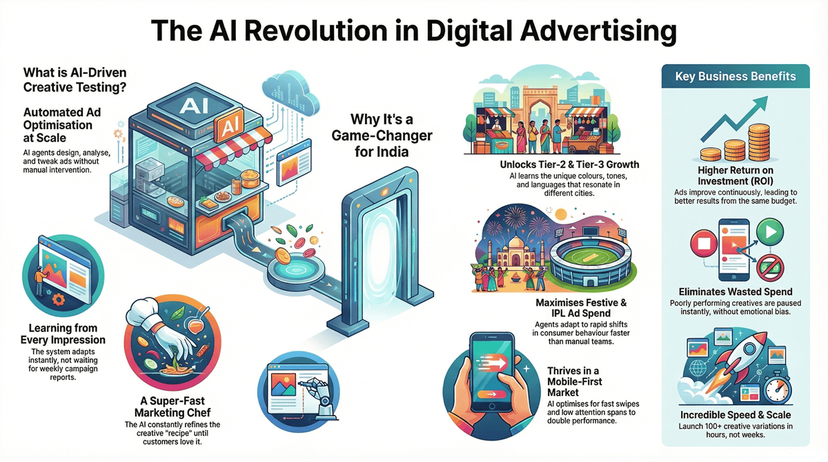 Just like that pani puri vendor who adjusts flavours with every customer, AI agents adjust your creatives with every impression.